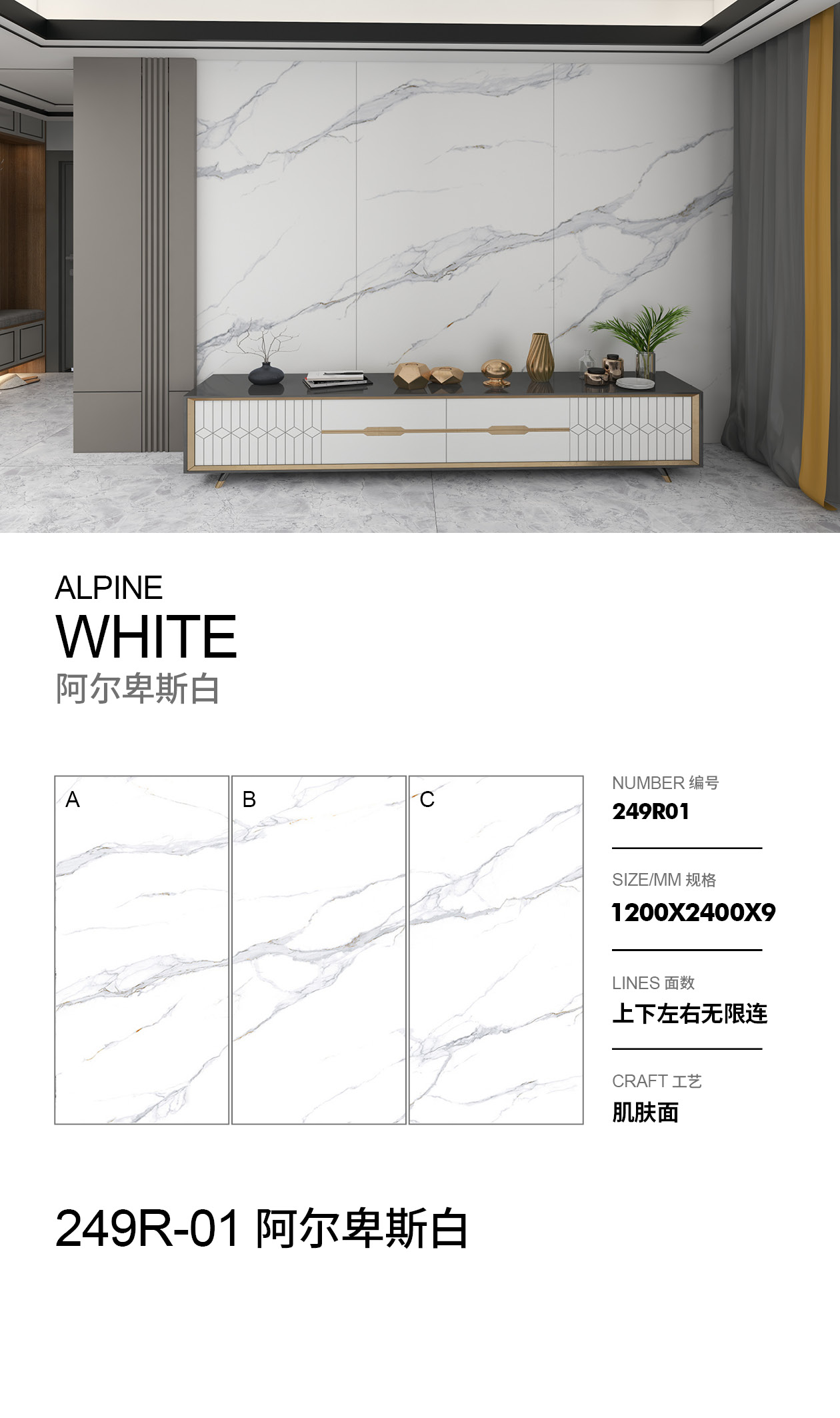 আলপাইন হোয়াইট রক স্ল্যাব | 1200x2400mm | প্রাকৃতিক পাথর ব্যহ্যাবরণ