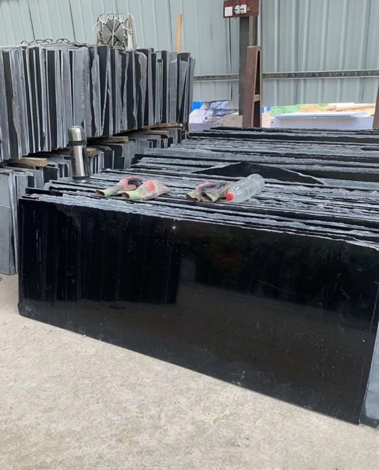 রঙের সামঞ্জস্য: ন্যূনতম থেকে মাঝারি স্ফটিক দাগের সাথে গভীর কালো পটভূমি; প্রতিটি স্ল্যাবে প্রাকৃতিক শিরার বৈচিত্র্য রয়েছে, যা অনন্য নান্দনিকতার গ্যারান্টি দেয়।